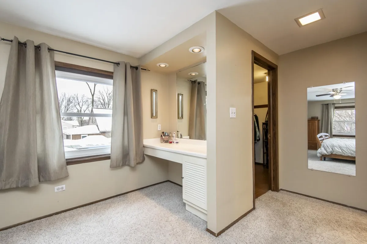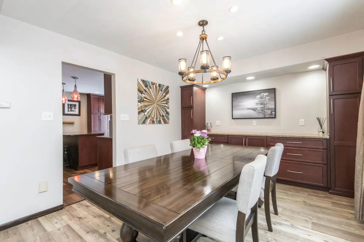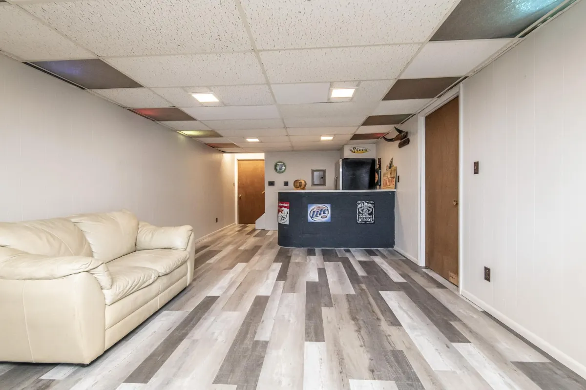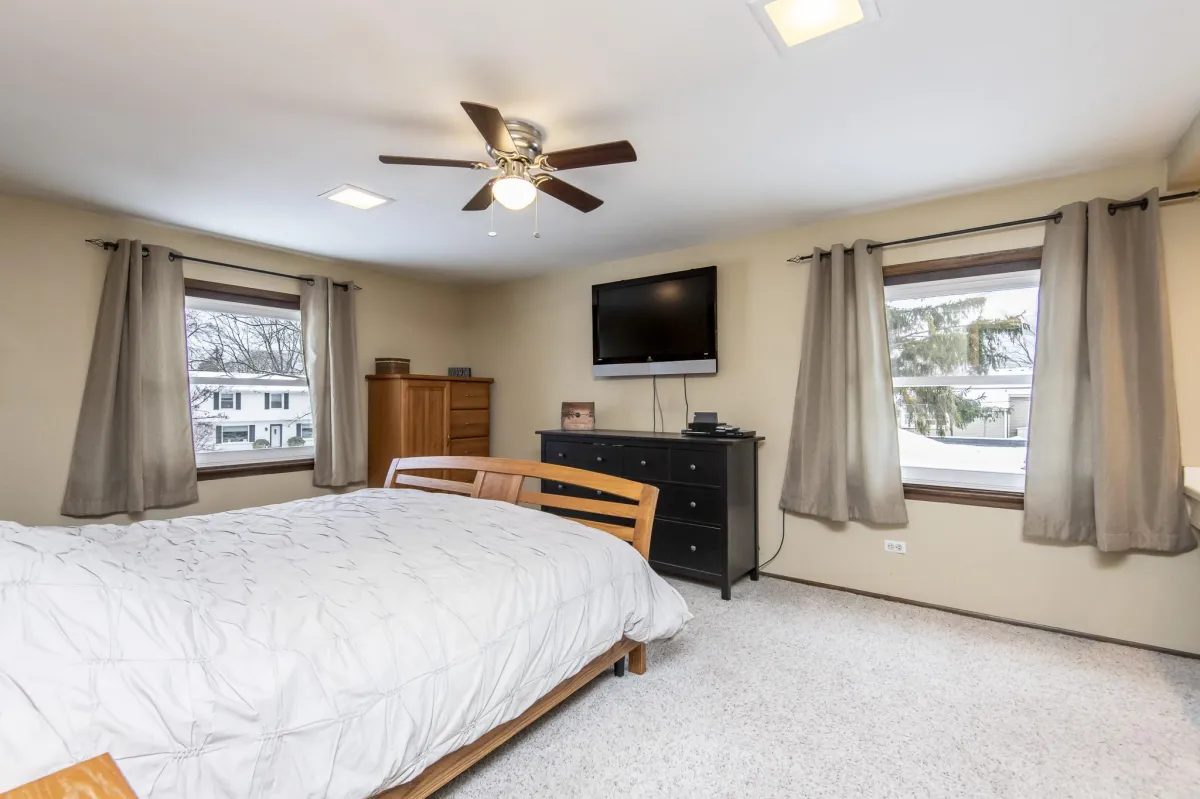 Step into comfort and style in this 4-bedroom home in Glendale, WI. The kitchen is a standout with granite countertops, cherry cabinets, and stainless steel appliances—modern and tasteful. The living room, featuring cherry plank flooring, is inviting and cozy. Host many gatherings in the dining room with its built-in buffet and cherry cabinetry. Relax in the family room, complete with a natural fireplace, beverage station and access to the deck. Convenient main-floor laundry and a powder room add practicality. Upstairs, unwind in the primary suite with a nicely tiled tub surround, walk in closet and vanity desk. The second full bath, with double sinks, serves three of the four bedrooms, now adorned with brand new carpet. Entertain or unwind in the lower level rec room with a retro bar, fridge, and soda pop machine. With newer mechanicals and roof, this home combines comfort and functionality. Embrace a blend of classic charm and contemporary living in this welcoming Glendale residence.